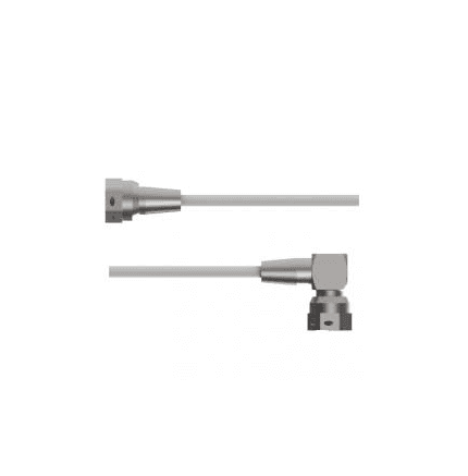 | 60061A | Câble dur, connecteur 10-32 à angle droit se terminant par un connecteur 10-32 droit, gaine en acier inoxydable avec manchon isolant en fibre de verre, haute température, température maximale de fonctionnement jusqu'à 594°C, longueur 3.05m |