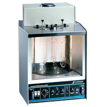 Le couvercle supérieur contient sept trous ronds de 51 mm (2 pouces) de diamètre. Jusqu'à sept viscosimètres capillaires en verre (dans des supports) peuvent être placés dans le bain. D'autres configurations de trous peuvent être fournies sur commande spéciale. Un circuit de commande à semi-conducteurs équipé d'une thermistance enrobée d'acier inoxydable assure un contrôle proportionnel de la température. Un agitateur motorisé assure une température uniforme dans tout le bain. Toutes les pièces en contact avec le bain sont en acier inoxydable et en verre. Le boîtier du bain est fabriqué en aluminium lourd et recouvert d'une finition époxy résistante à la corrosion. Les viscosimètres, les supports, l'huile de bain et les thermomètres doivent être achetés séparément.