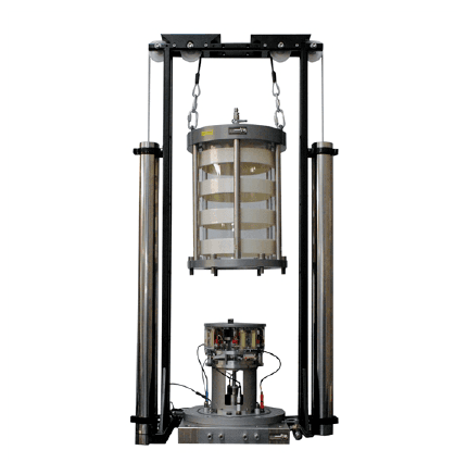 Le cadre de levage permet à l’utilisateur de retirer en toute sécurité le couvercle de la cellule triaxiale à l’aide d’un système de poulie à contrepoids. Le cadre n’est pas fixé à la colonne de résonance, il peut donc être facilement déplacé vers un autre appareil ou stocké jusqu’à ce qu’il soit nécessaire.
