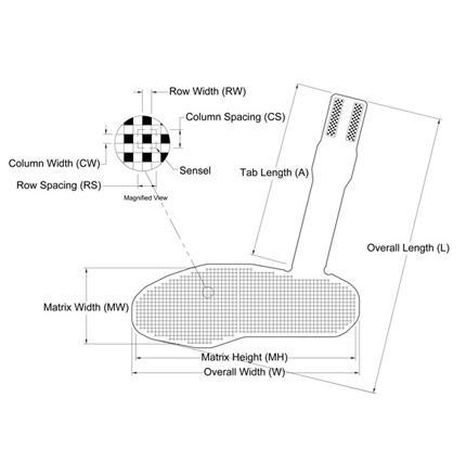 Au cœur de chaque système de mesure de pression Tekscan se trouve un capteur de pression tactile ultrafin. Chaque capteur Tekscan est composé de nombreux éléments de détection individuels, ou capteurs. La densité des capteurs représente le nombre total de capteurs par unité de surface. Pour utiliser les capteurs de pression Tekscan, vous devez disposer d'un système de mesure de pression Tekscan ainsi que de la carte de capteur correspondante (pilote logiciel) pour le capteur.