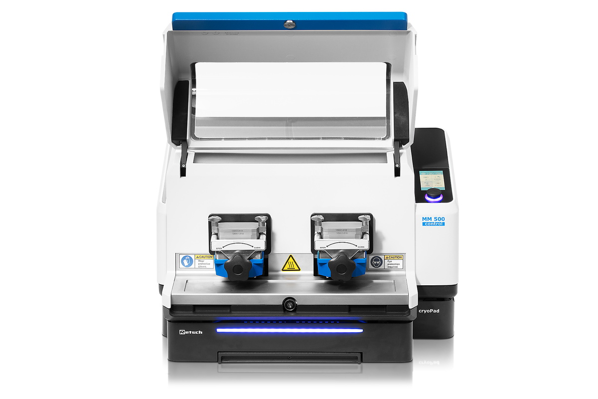 La régulation de la température du MM 500 control est spécialement conçue pour le traitement d'échantillons sensibles à la température.