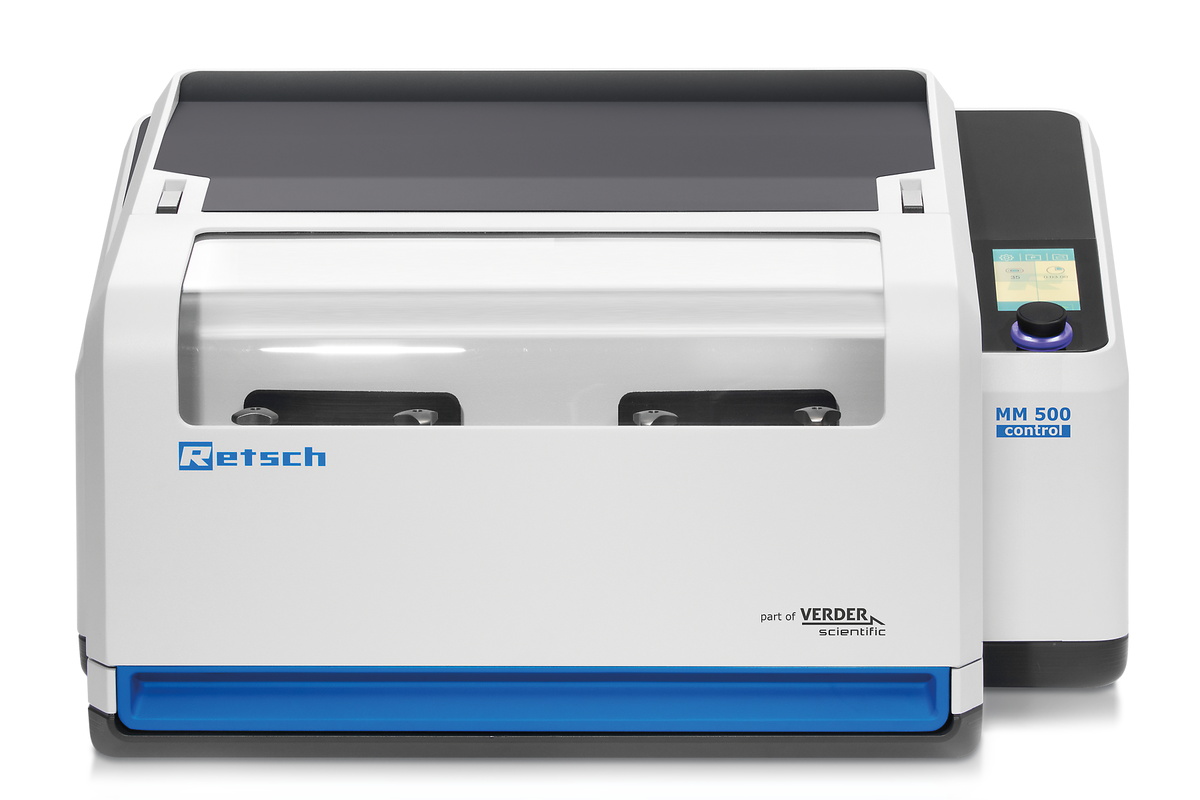 Le MM 500 control est un broyeur à billes de laboratoire à haute énergie qui peut être utilisé pour le broyage à sec, humide et cryogénique avec une fréquence allant jusqu'à 30 Hz.