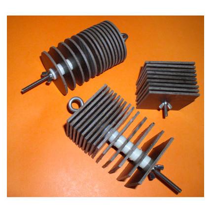 - 14 plaques à espacement variable, 75 mm (3") de diamètre, séparées par 8 entretoises simples en nylon ; 1 double ; 2 triples ; 2 quadruples
