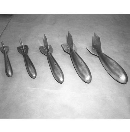 Les poids de sondage sont utilisés dans les cours d'eau où les mesures de débit sont effectuées par des techniques de suspension à partir de ponts, de téléphériques ou de bateaux. Le poids de sonde est suspendu sous le courantomètre pour le maintenir immobile dans l'eau. Les poids USGS de type Columbus ou "C" sont profilés pour minimiser la résistance à l'écoulement de l'eau et sont plus longs que le courantomètre, offrant ainsi une certaine protection contre les piliers de pont et les débris qui s'écoulent. La longueur supplémentaire permet également d'obtenir de meilleures caractéristiques directionnelles et stabilisatrices que celles obtenues avec d'autres poids. La forme de la fente du crochet permet au crochet de s'incliner de 15 degrés vers l'avant et de 5 degrés vers l'arrière par rapport à la verticale. Cela empêche le compteur d'entrer en contact avec le poids et d'être endommagé par celui-ci. Ces poids sont disponibles en 15, 30, 50, 75, 100, 150, 200 et 300 livres (7, 14, 23, 34, 45, 68, 91 et 136 kg). Le poids de 15 livres (7 kg) est en laiton, mais tous les autres sont en plomb et ont un empennage en aluminium. Tous les poids sont correctement équilibrés et testés selon une méthode approuvée avant leur expédition. Les poids peuvent être recouverts d'une couche d'époxy si nécessaire.