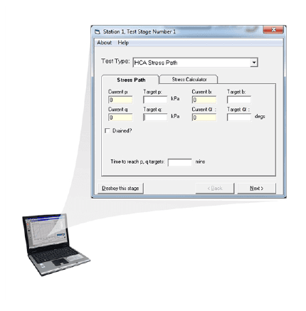 Fournit un contrôle linéaire indépendant de p, q, b et alpha sous contrôle de contrainte ou de déformation. Ce module fournit les fonctions fondamentales de contrôle des trajectoires de contrainte HCA que les spécifications d’essai exigent, avec un nombre illimité de trajectoires liées. Remarque : le PC doit être équipé de GDSLAB.
