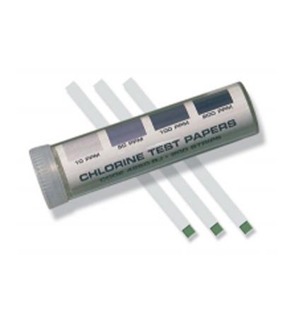 Les bandelettes de test du chlore sont traitées chimiquement pour indiquer les niveaux de désinfectant. La gamme et la sensibilité sont de 10, 50, 100, 200 ppm (200 bandes). Plus d’informations