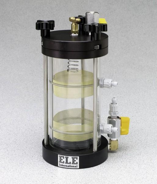 Chaque perméamètre est équipé de vannes, de pierres poreuses et de tuyaux pour le raccordement à une source d'eau, d'un aspirateur et de tubes de manomètre. Pour éviter les changements de densité du sol pendant l'essai, un ressort est incorporé dans le capuchon supérieur pour appliquer 5 à 10 lbf. (2,2 à 4,5 kg) contre la pierre poreuse supérieure.