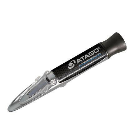 Ce nouveau type de réfractomètre à main est le premier à être équipé d'une compensation automatique de la température et d'une résistance à l'eau (IP65) en même temps. Tout en offrant des fonctions telles que la facilité de lecture, la facilité de prise en main, l'échantillonnage en douceur, l'élimination facile de l'échantillon par le bord, l'amélioration de l'aspect hygiénique grâce à l'utilisation d'un nouveau type de poignée, et une structure bien équilibrée, l'accent est également mis sur son design, bien illustré par le corps fuselé et la poignée solide à la texture riche.