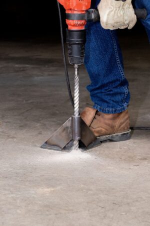 Percez un trou de 16 mm de diamètre à travers la dalle et d'environ 25 mm dans le sol sous-jacent pour former un vide.
