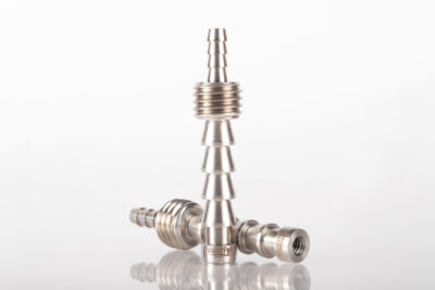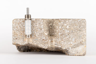 Port d'échantillonnage et/ou de pression en acier inoxydable pour les gaz du sol. Ce Vapor Pin® est conçu pour durer des centaines d'utilisations et pour la surveillance dans des environnements corrosifs. Elle est dotée d'un raccord cannelé nominal de 1/4 de pouce au sommet et d'une longueur totale de 3 ½". Cette version est préférée par les régulateurs pour les projets de surveillance à long terme. Le Vapor Pin® est relié à un tube semi-rigide, par exemple Nylaflow ou Teflon, par l'intermédiaire d'un court morceau de tube Tygon™ R-3063.