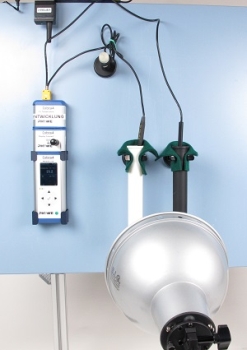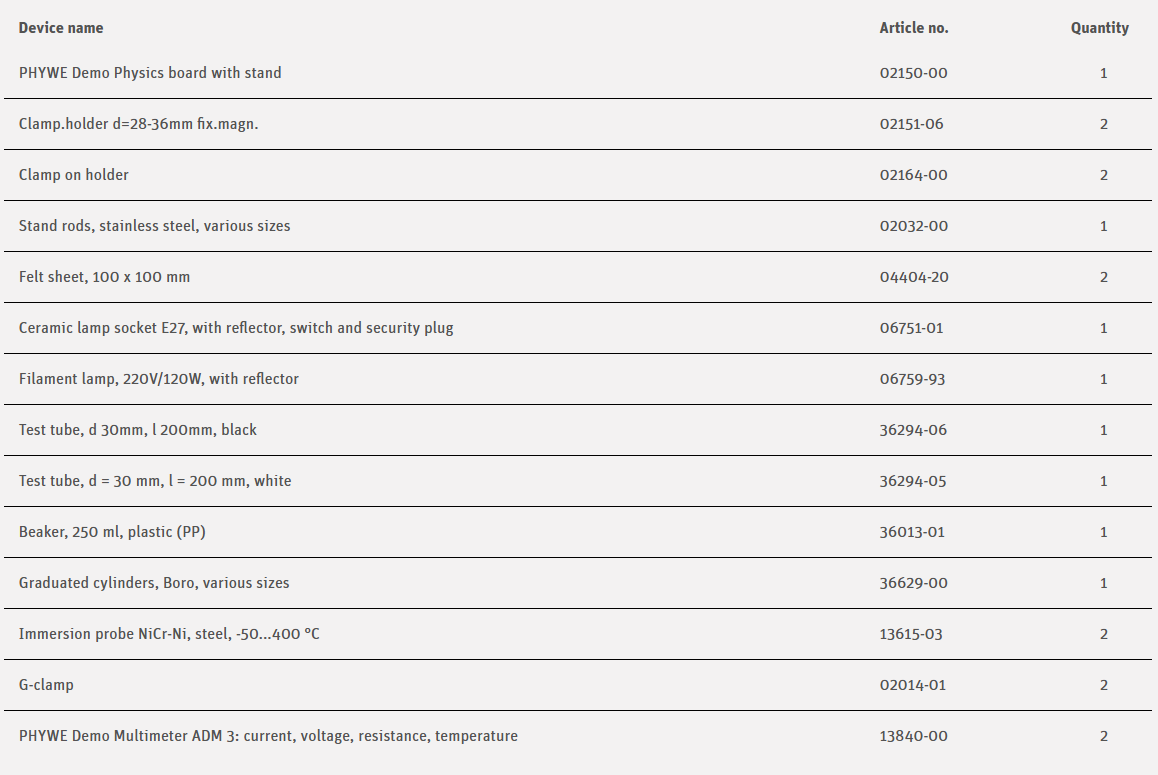 How much energy an object absorbs depends on the color of its surface. A black tube and a test tube are filled with water in an experiment and illuminated with an incandescent bulb. The heating of the water is measured.