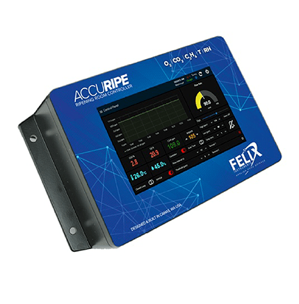 The AccuStore and AccuRipe systems allow ripening, packing, and shipping managers to both monitor and control the levels of CO2, O2, and C2H4 (Ethylene) in monitored spaces. With the ability to easily report, scrub, and increase ripening gases, these systems are revolutionizing the postharvest industry by minimizing spoilage risk, improving consistency and removing ripening room guesswork.