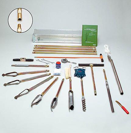 Auger set for heterogeneous soils, standard set for auge- rings to a depth of 5 m. With unpainted augers for environmental research. Augers with conical screw thread connection.