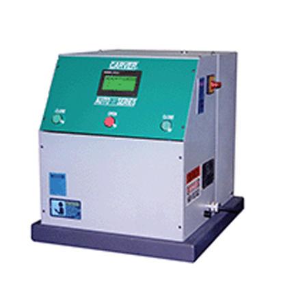 A self-contained, 1/4 HP electrically operated automatic power unit is available for retrofit to existing Carver manual presses. Develops maximum clamping force for most 12, 25 or 30 ton models (minimum 1,000 lbs). Featuring the new "NE" digital control system. Its compact bench design is just 24" L x 20" W x 21" H, 130 lbs.The new (NE) control system (pressure only) features full touch screen interface, 10 recipe storage capability with 20 programmable segments of clamp force and time recipe. Programmable in units of Kg, US tons, & pounds. Automatic bump sequence (able to be programmed in any/all segments). Six feet of hose for connection to existing Carver hand operated press. Two hand "anti-tie-down"close buttons for operator safety. Also, includes safety shield with interlocking safety door switch.Force calibration (p/n 1525.00001) by instruments traceable to NIST are available for new equipment.