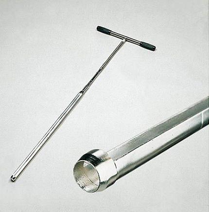 This bi-partite gouge auger distinguishes itself from other gouges by the cylindrical tapered cutting head at the bottom side of the gouge that, when the auger is pushed into the soil, cuts a cylinder shaped piece from the soil. As a result the auger does not need to be revolved around its axis after being […]