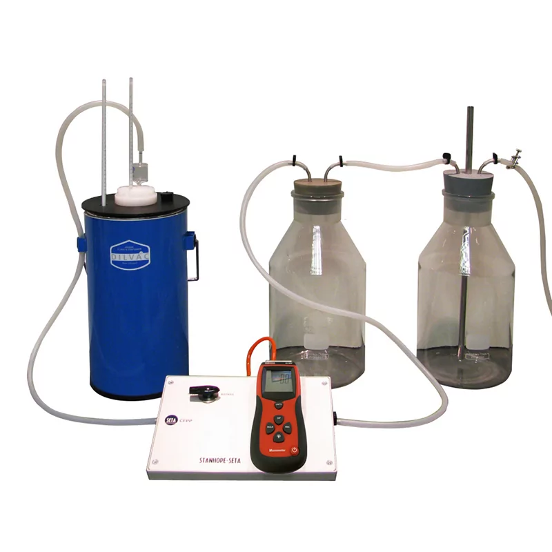 The Cold Filter Plugging Point (CFPP) Apparatus determines low temperature flow characteristics of diesel fuels, gas oils and other distillate fuels. It comprises a 4 litre dry ice bath (Dewar Flask) and a CFPP test insert connected via a three way cock to a UKAS certified digital manometer and two 5 litre pressure equalising vessels.