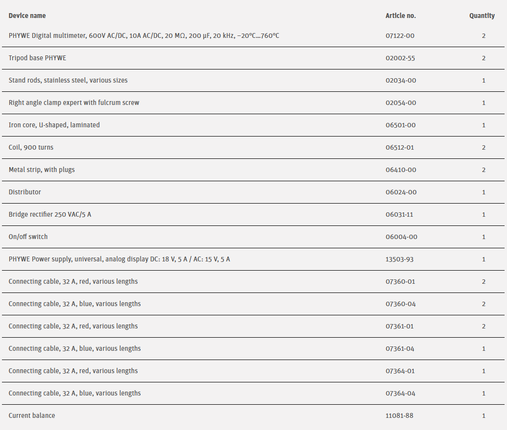 The force acting on a current-carrying conductor loop in a uniform magnetic field (Lorentz force) is measured with a balance. Conductor loops of various sizes are suspended in turn from the balance, and the Lorentz force is determined as a function of the current and magnetic induction. The uniform magnetic field is generated by an electromagnet. The magnetic induction can be varied with the coil current.