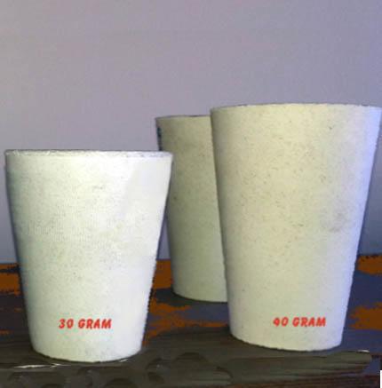 Currently, 40 gram and 30 gram are the primary size crucibles used for fire assaying. All assay crucibles will give good service at temperatures up to 2,000 degrees F (1,093 degrees C).