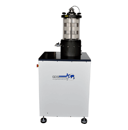 The Advanced Dynamic Triaxial Testing System is a high-end, no compromise testing apparatus combining a triaxial cell with a dynamic actuator capable of applying load, deformation and stresses up to 10Hz. The cell itself is screw-driven from an integral base unit housing the motor drive. Axial force and axial deformation are applied through the base of the cell. The system can be combined with a dynamic cell pressure actuator such that cell pressures may also be applied dynamically up to fundamental frequency of the machine (i.e. 2Hz, 5Hz or 10Hz).