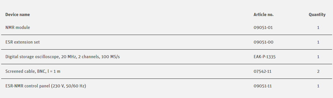 With electron spin resonance (ESR) spectroscopy compounds having unpaired electrons can be studied. The physical background of ESR is similar to that of nuclear magnetic resonance (NMR), but with this technique electron spins are excited instead of spins of atomic nuclei. The g-factor of a DPPH (Diphenylpikrylhydrazyl) specimen and the halfwidth of the absorption line are determined, using the ESR apparatus.