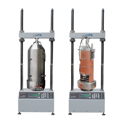 The -30oC cooling system provides ideal conditions for frozen soil testing. Its high pressure testing capability (up to 100MPa) along with low temperature provides the ideal environment for Gas Hydrate Testing. The system also has the option for a Heating only system.
