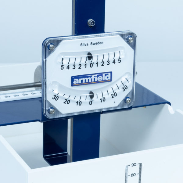 A single plumb bob is suspended from the mast which indicates the angle of heel on a calibrated scale. A weight with lateral adjustment enables the degree of heel to be varied and hence the stability of the pontoon determined.