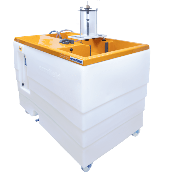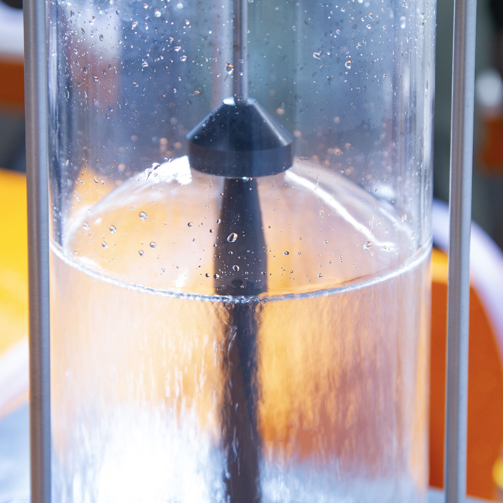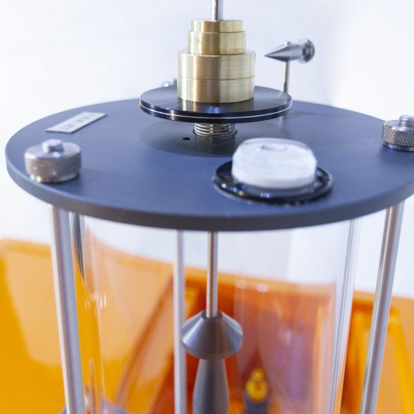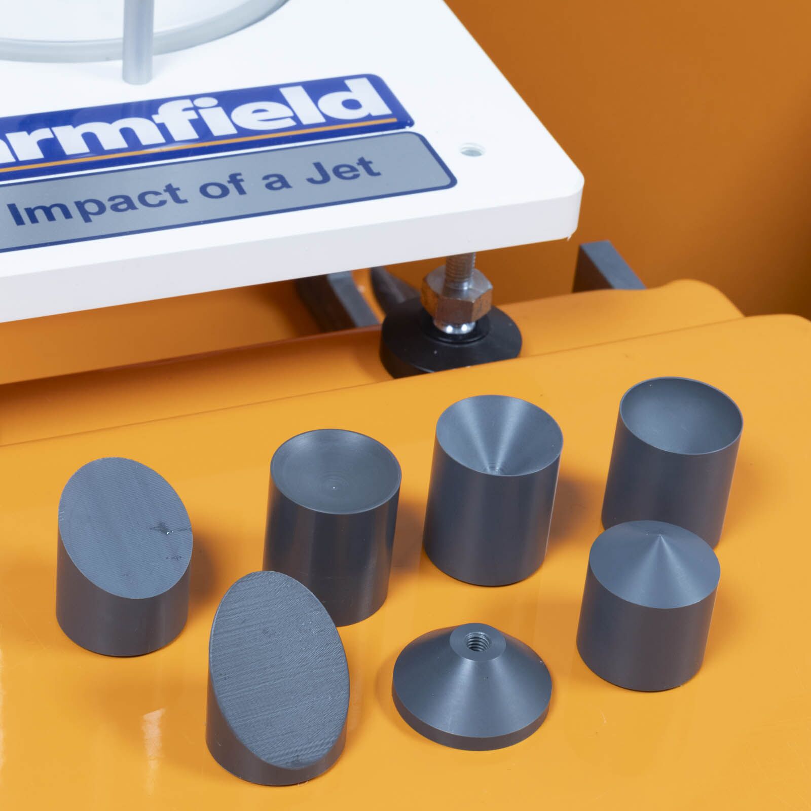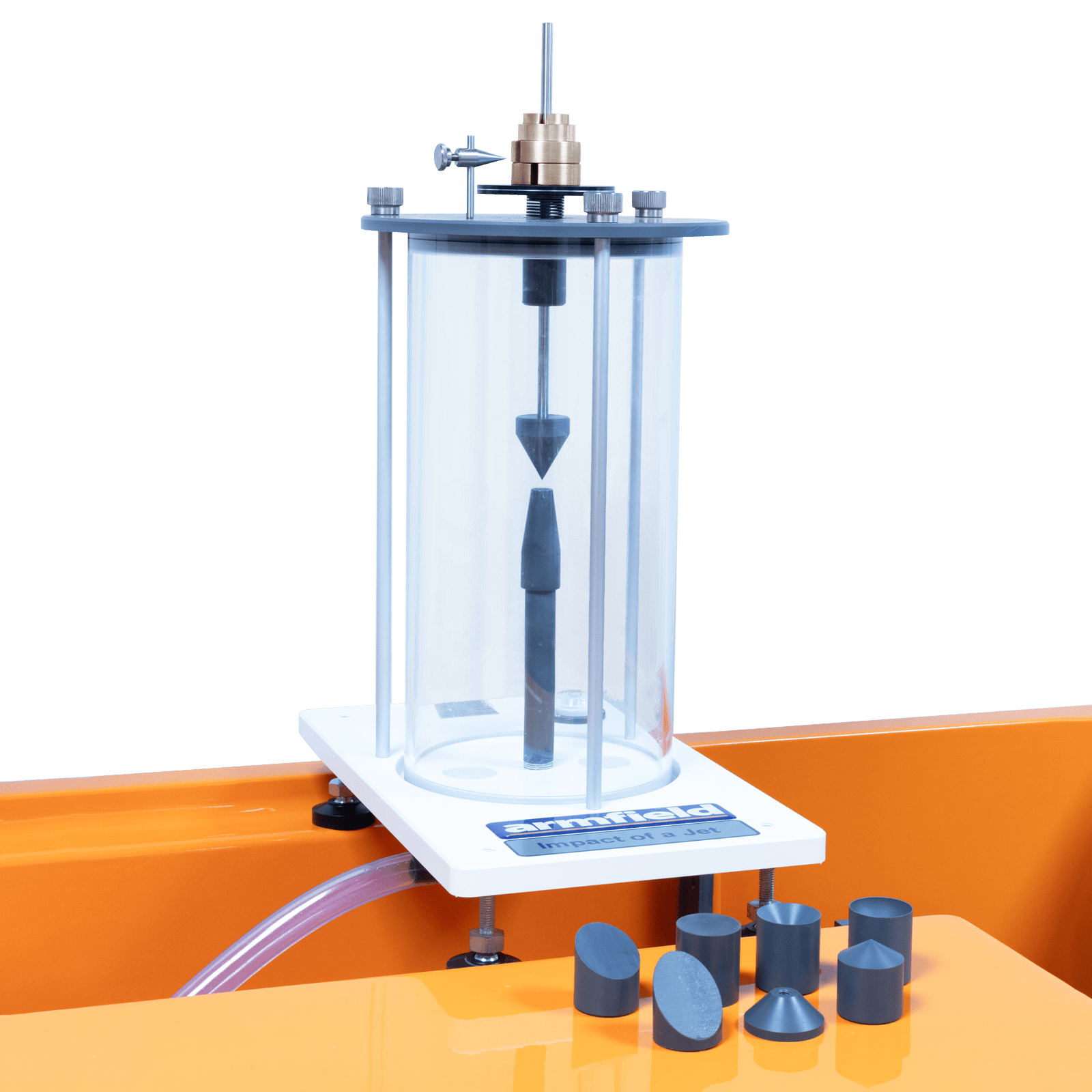 The apparatus consists of a cylindrical clear acrylic fabrication with provision for levelling. Water is fed through a nozzle and discharged vertically to strike a target carried on a stem, which extends through the cover. A weight carrier is mounted on the upper end of the stem.