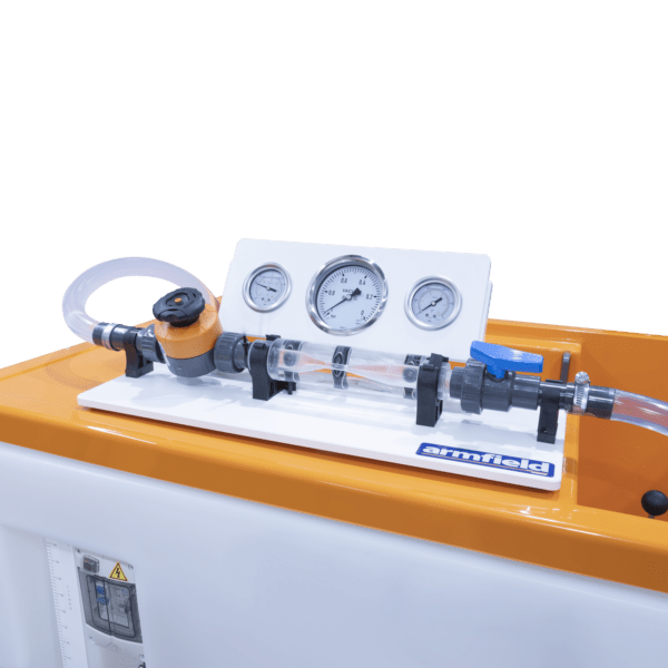 This equipment demonstrates to students visually, audibly and numerically the phenomenon of cavitation and its association with the vapour pressure of a liquid.