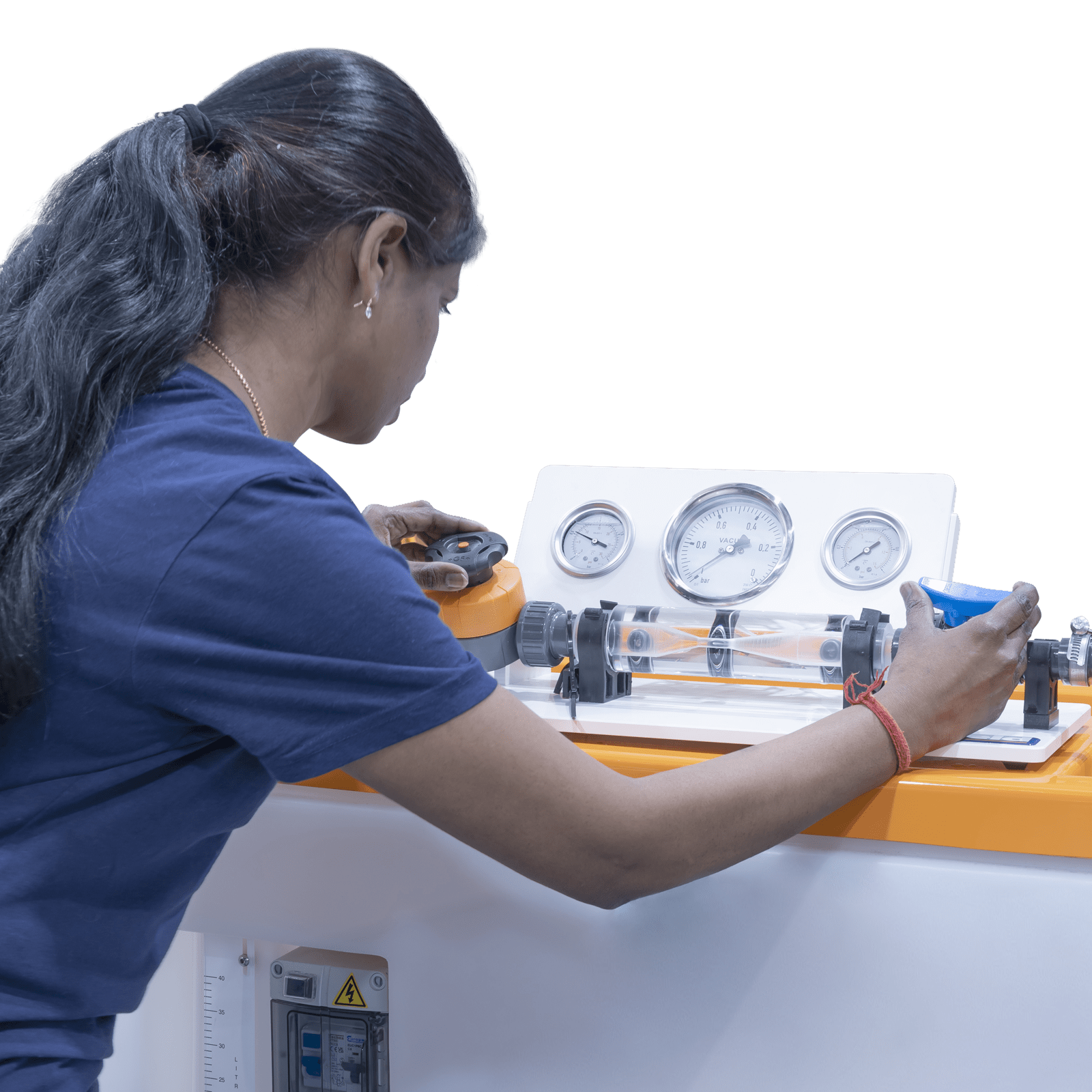 This accessory consists of a circular Venturi-shaped test section manufactured from clear acrylic to enable visualisation inside the section.
