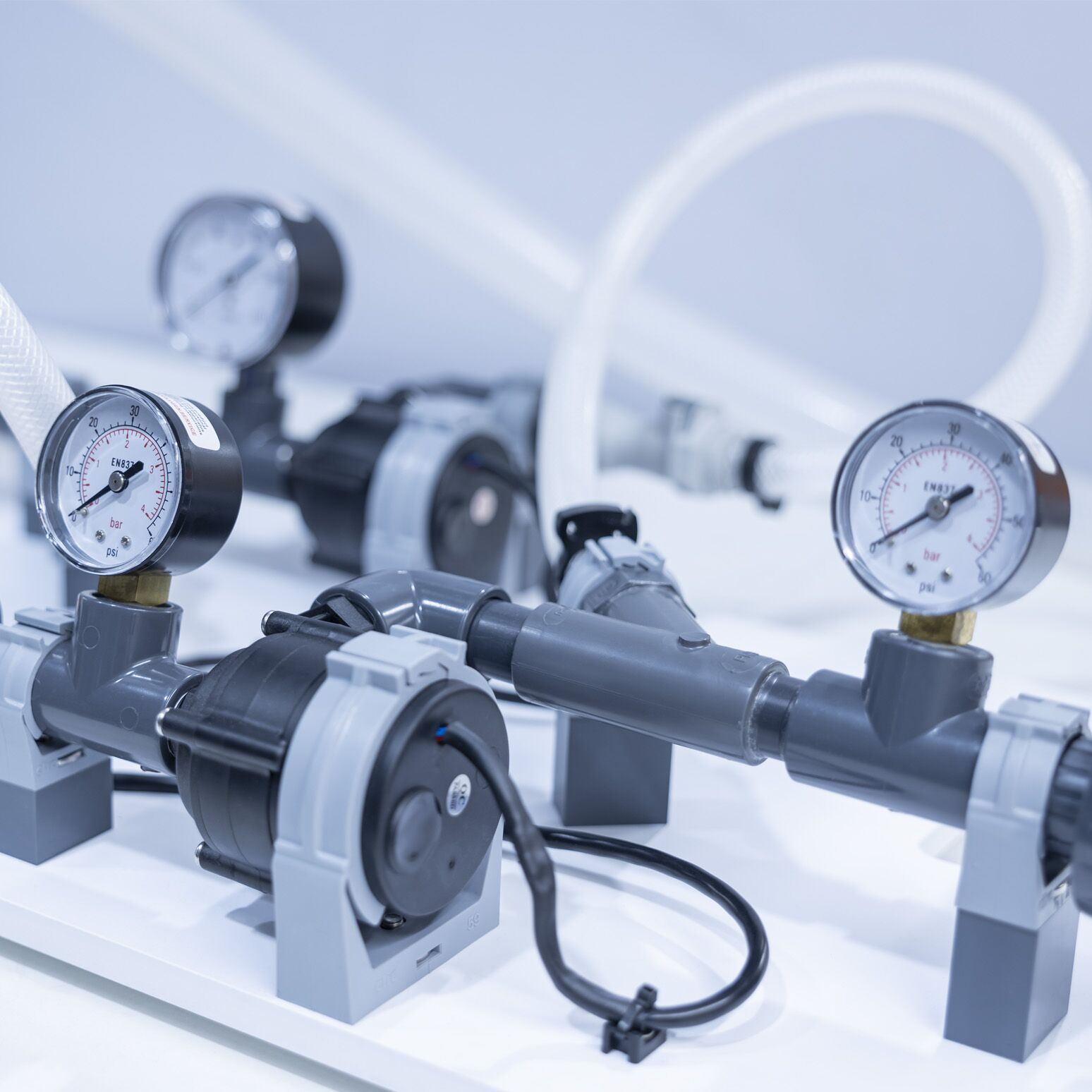 Flexible tubing and quick release connectors are supplied to allow the pumps to be connected for single pump, series or parallel pump operation.