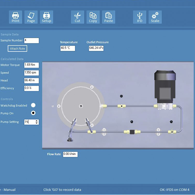 The pump speed is accurately controlled by an advanced electronic inverter within the IFD7 (an essential accessory). This inverter also calculates the torque produced at the motor drive shaft, allowing the power used by the pump to be derived.