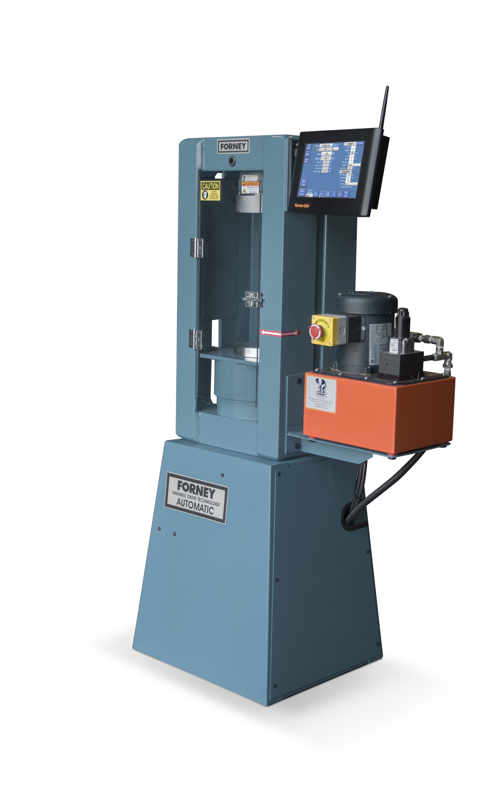 Setup of testing protocol, real-time display of test data, and post-test data transfer is accomplished through the ForneyLink touchscreen HMI. The operator can navigate options for: