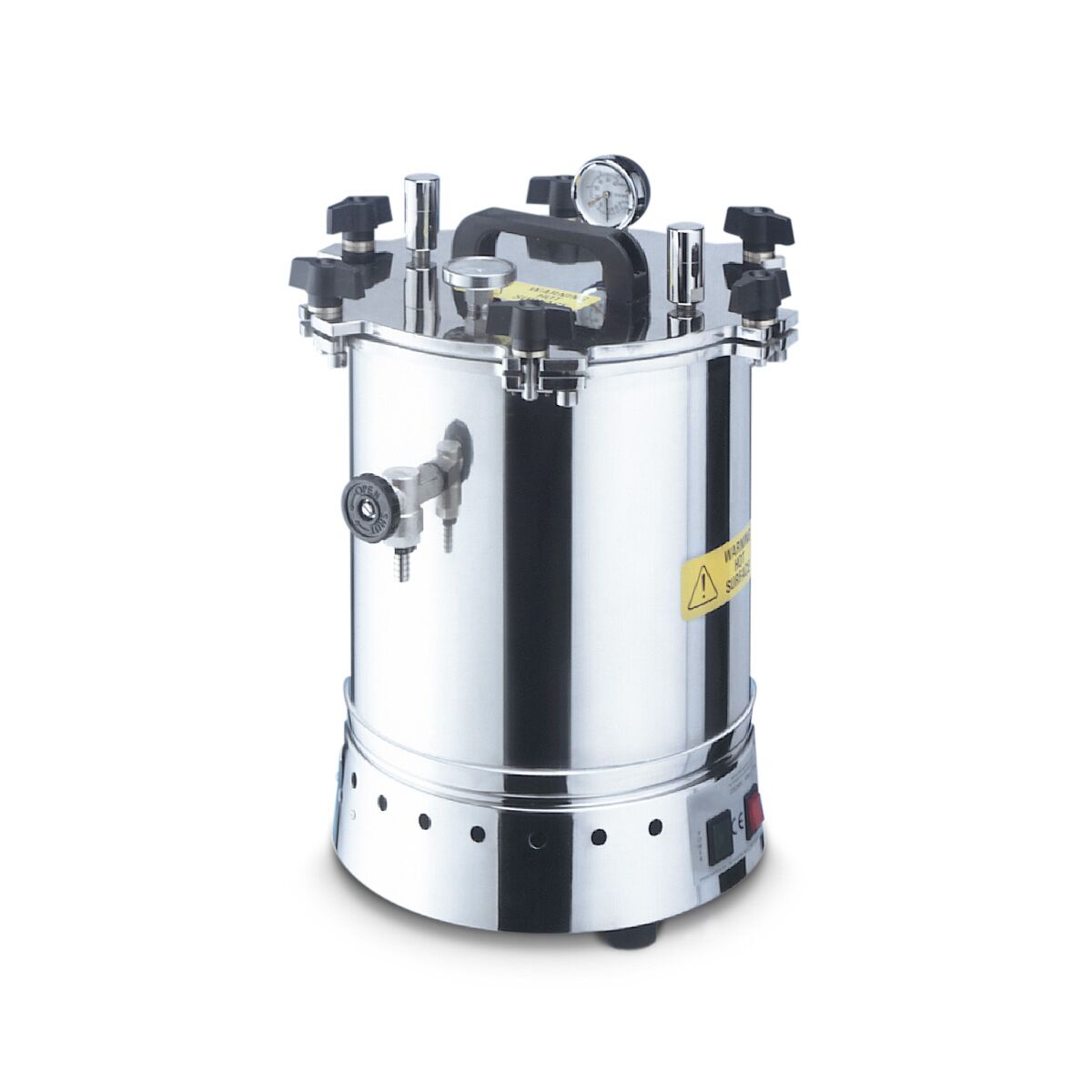 The autoclave is heated by an electrical element. The temperature inside the vessel is measured using a PT100 probe. The time and temperature for the autoclave cycle are set by the operator.