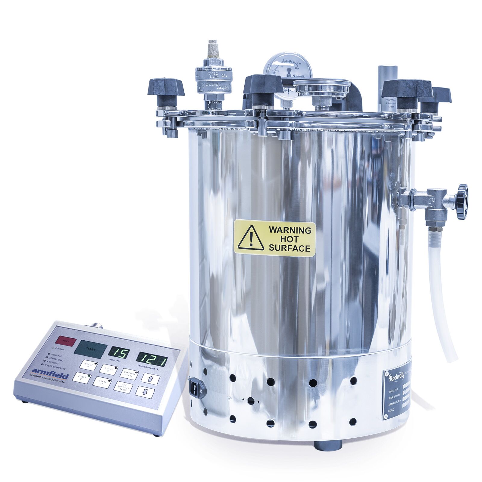 The Armfield Autoclave FT19 is a laboratory-scale portable autoclave suitable for in-container sterilisation of food products and microbiological media.