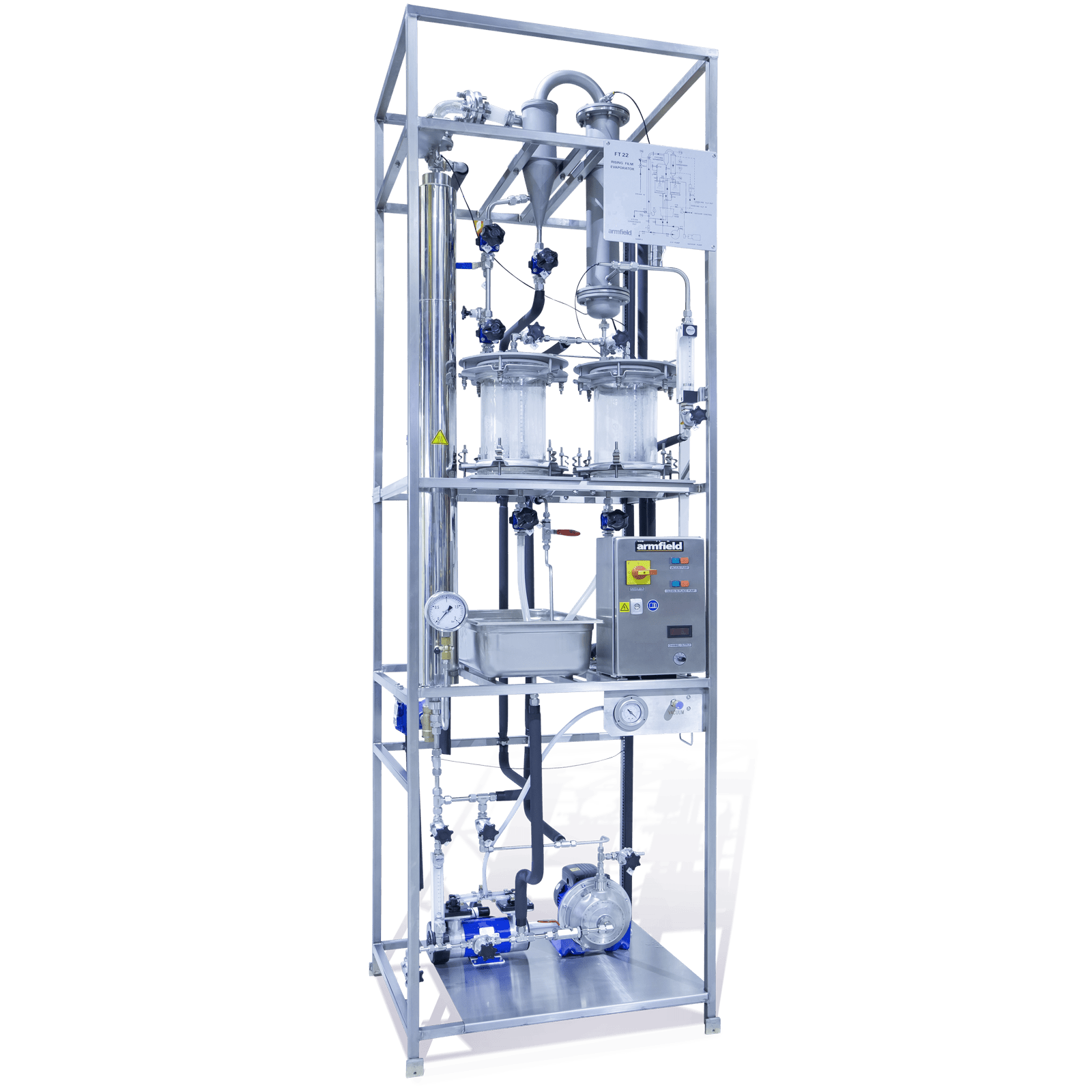 The Armfield Rising Film Evaporator is a floor-standing unit, designed to provide practical training for the operation of large modern evaporator equipment in industry.