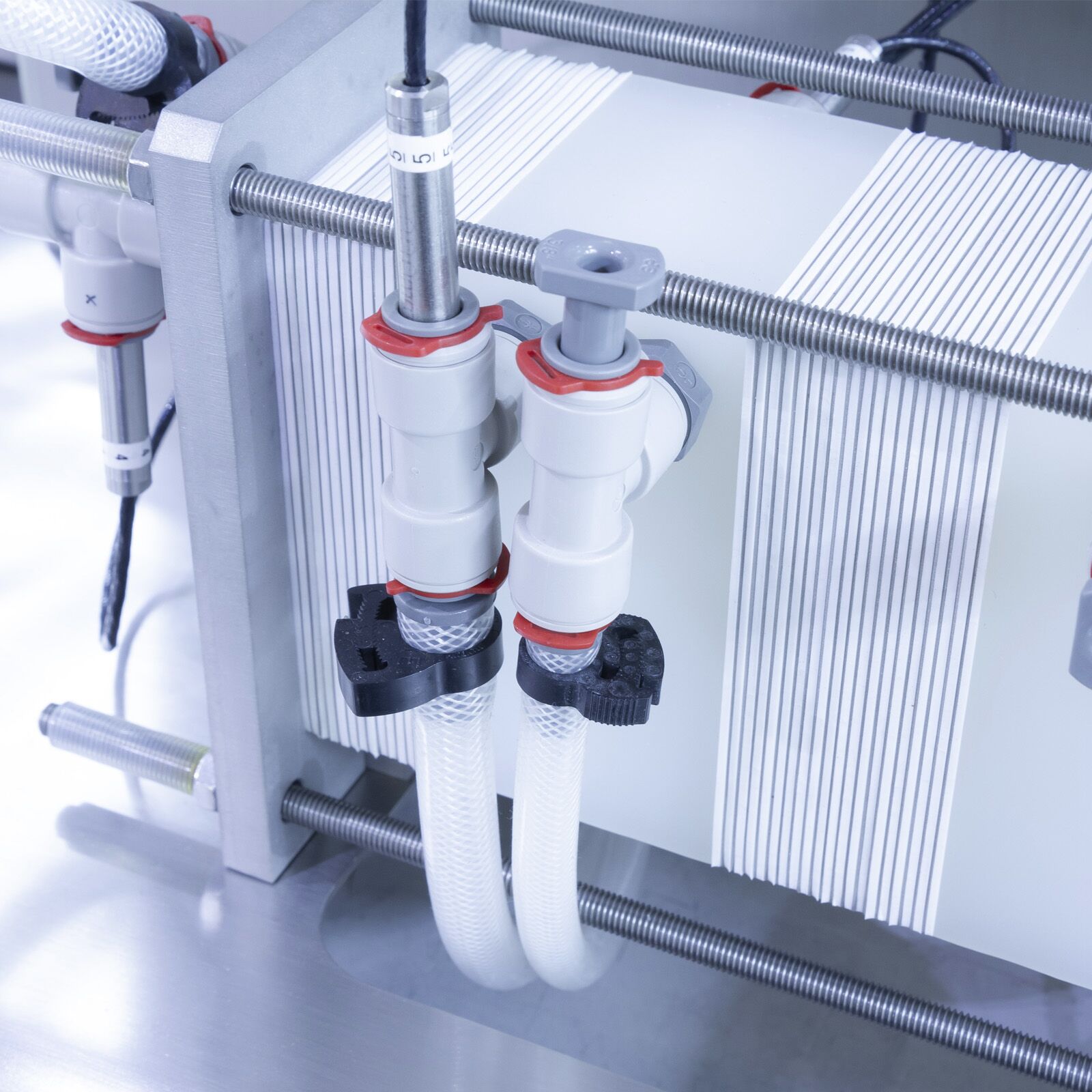 A CIP (clean-in-place) facility is incorporated which allows disinfection, pre-rinsing, detergent washing and final rinsing. The ability to vary process conditions has been built into the unit in the form of the following features: