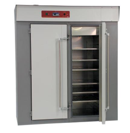 Horizontal air flow provides fast heat-up and recovery and ensures rapid drying. Heated air is continuously circulated by twin turbo blowers. Blowers also circulate air to motor bearings to prolong motor life. Punched stainless steel shelves are adjustable. Adjustable three air intake and exhaust ports can be opened for fast drying of high-moisture content samples. The 3.5 inch thick wrap-around fiberglass insulation on all sides minimizes heat loss.