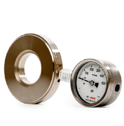The Geosense® HLC-6000 series Hydraulic Anchor Load Cells consist of a sensitive pressure pad formed by joining two stiff steel discs at their periphery. The void inside the cell is filled with de-aired fluid. When load is applied to the cell the pressure of the inside liquid changes. The changes in pressure correspond directly to the load applied.