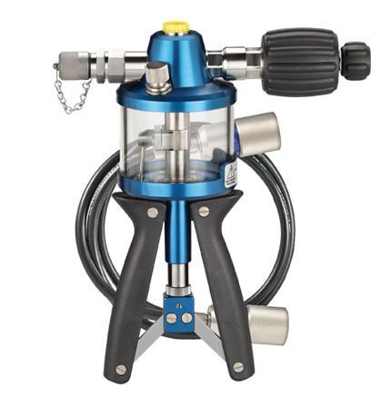 The required test pressure is initially generated using the handles and