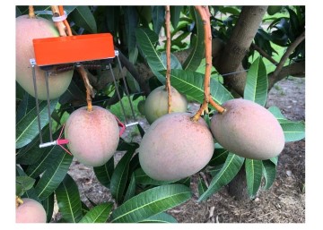 Original parallelogram design of moving arms provides firm and straight positioning of the sensor’s flaps on a fruit under study.
