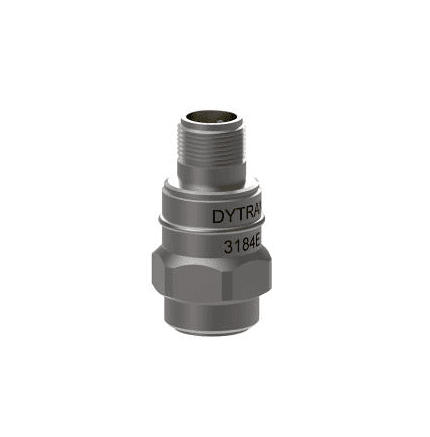 Design of the model 3184E incorporates a ceramic shear sensing element, packaged in a stainless steel housing with a 2–pin MIL–C–5015 axial connector. Dytran model 3184E is also directly compatible with the series 6194 Immersion Proof sealing boot. When used together, the sensor remains fully functional in an IP65 environment. The model 3184E is also hermetically sealed for reliable operation in high humidity and dirty environments and case isolated to avoid EMI/ground loop interference.