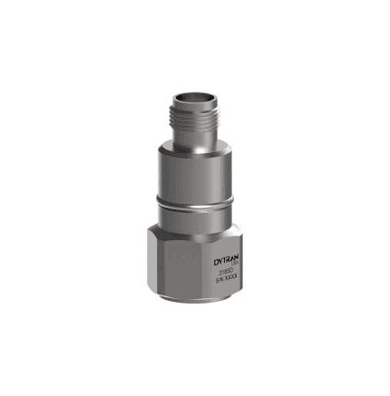 Design of the model 3185D incorporates a ceramic shear sensing element, packaged in a stainless steel housing with a TNC axial connector and 1/4–28 stud mounting capabilities. The model 3185D is designed to be directly compatible with the Dytran model 6185 Immersion Proof boot. When used together, the sensor remains fully functional in an IP65 environment. The model 3185D is hermetically sealed for reliable operation in high humidity and dirty environments and base isolated to avoid EMI/ground loop interference.