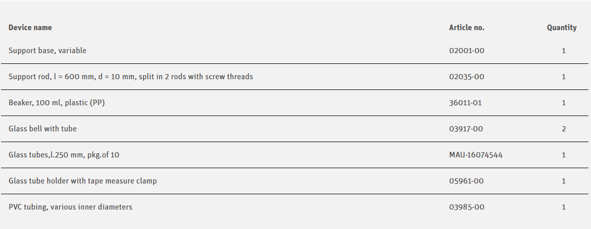 Using a flexible U-tube consisting of two glass bells and a piece of tubing, the students should investigate how the water level in the two sides of the U-tube behave when the relative positions of the two tubes are changed.