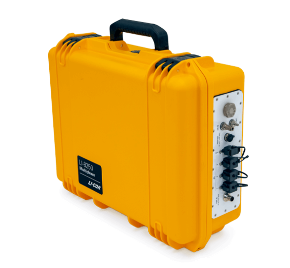 Designed for flexibility, the LI-8250 Multiplexer lets you tailor your long-term system to the gas species and analyzer of your choice. LI-COR offers the LI-7810 CH4/CO2/H2O Trace Gas Analyzer, the LI-7820 N2O/H2O Trace Gas Analyzer, and the LI-870 CO2/H2O Analyzer—but third-party analyzers can also be used.