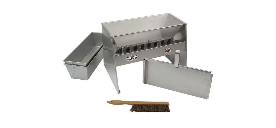 Riffle-type sample splitters divide or halve dry materials such as cement, gravel, powdered ores, coal, coke, sand, soils, etc. Material poured into the hopper is divided into two equal portions by a series of chutes that discharge the material alternately in opposite directions into separate pans. Humboldt splitters are stainless steel. Pans are either stainless or cold-rolled steel.