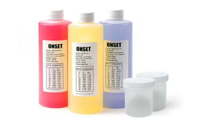 Includes pH 4.01, pH 7.00, pH 10.00 buffer solutions (475 mL bottles), and two 4 oz. calibration beakers (MX2500-CAL-BKR).