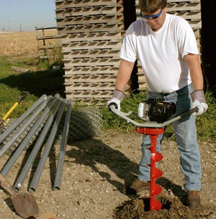 The Model 240 is the first one-man, hand-held hole digger to feature an all-position, 4 stroke gasoline engine. Operate it on side hills or store it on its side without fear of damage or oil leaking from the crankcase. It also means no more mixing oil with gasoline. No more separate fuel cans. And, no more smoky, exhaust mess because the Subaru Robin EH035 engine meets the tough, new EPA emission standards.