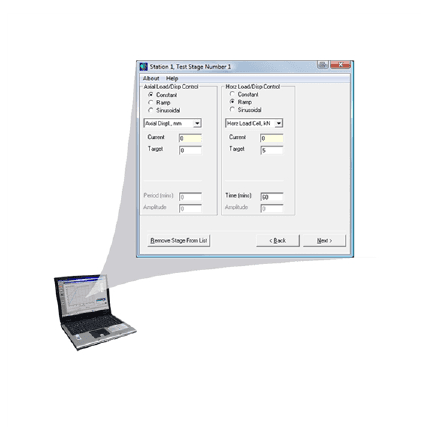 True Triaxial specific advanced loading module for independent control of the 3 axes. Axial and horizontal control by load, displacement, stress or strain, and the third axis controlled by stress (i.e. pressure). Constant True Triaxial B function may also be maintained using this module. Note PC needs to be running GDSLAB.