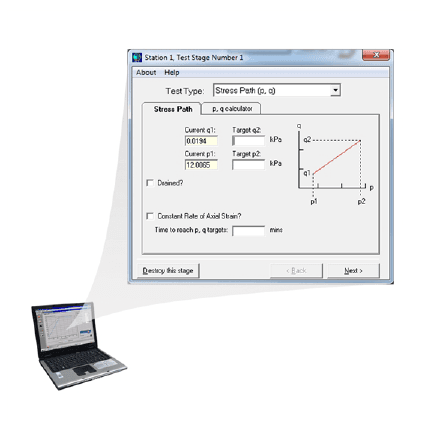 Independent linear control of p, q or s, t stress space with unlimited number of linked paths. Note: PC needs to be running GDSLAB.