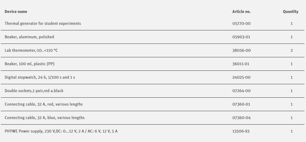In this experiment, the shown effect in experiment 7.1 is inverted. Instead of converting heat into electric energy with the help of the thermo generator, we prove here the Peltier effect. The effect is that the current flowing through the Peltier element heats one plate up and cools down the other. The higher the current, the faster the plates will heat up or cool down.
